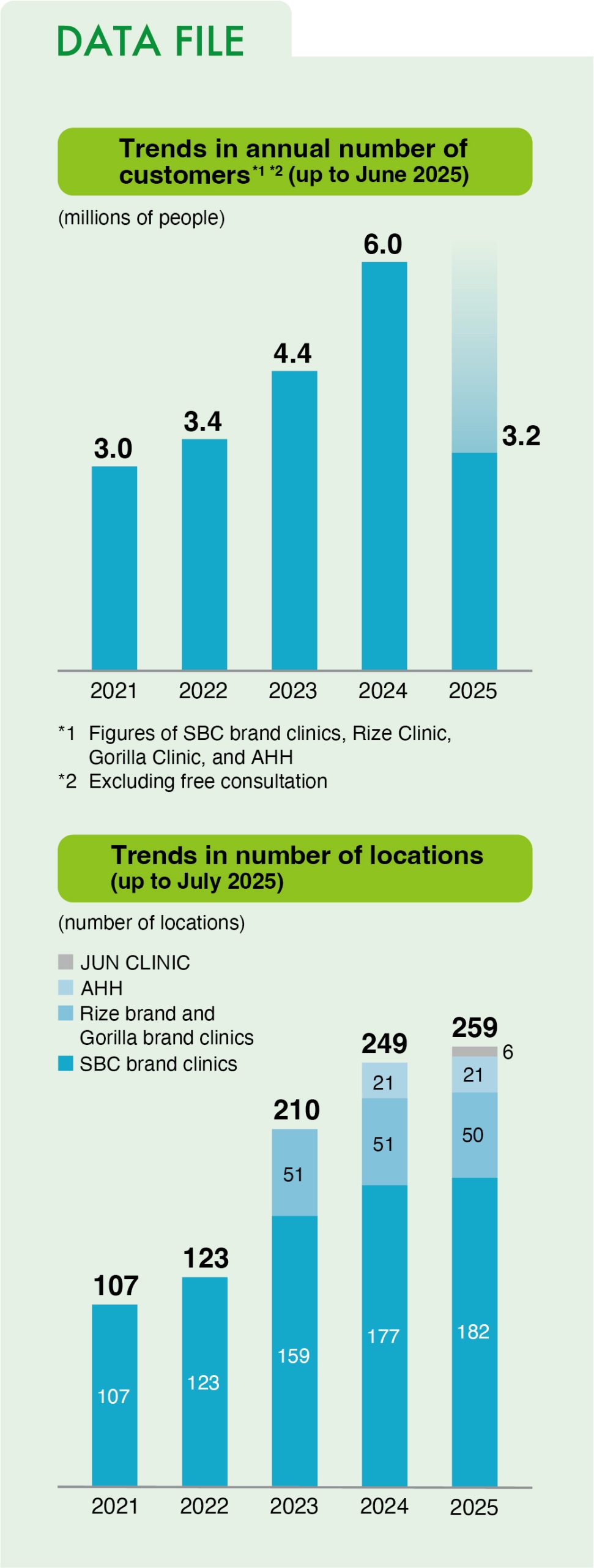To achieve SBC’s group purpose, “By medical innovation, contribute to improving the “well-being” of people around the world”, we will continue to expand our clinic network and global operations through data-driven management. We would sincerely appreciate your continued support.